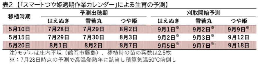 高温の影響で稲刈り予測が9月1日と早まっています。