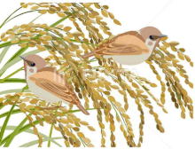 一面、黄金の稲に気づいてスズメ達が集まってきた。