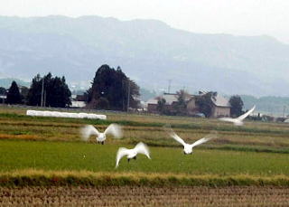 冬の烏の白鳥が鳴きながら、ひろぴろとした広野に集まり