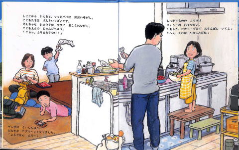 ストーリーには「お父さん」が家事・育児を行う場面が、随所に描かれています。