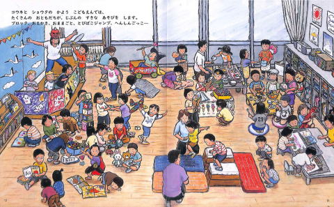 外国にルーツのある子や、裏表紙には障がいのある子が、地域の人と交流する様子などが描かれています。