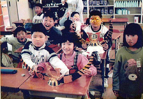 苦労して、みんなが力を合わせて作った獅子頭が出来た時は、先生も驚きました。