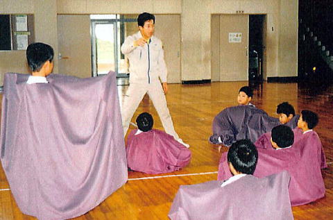 師匠の話を、子ども達は素直に聞き学ぶ。 獅子踊りの難しさを体験し、師匠を尊敬する心や、礼儀を大切にする心が育つ。