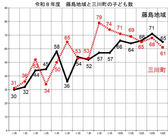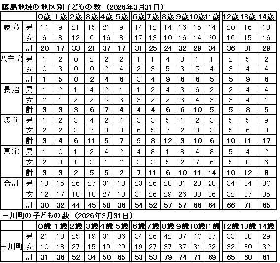 三川町と藤島地域の0歳~14歳の合計を比較すると、861人対797人で、藤島が64人も少なく、平成大合併の弊害です。