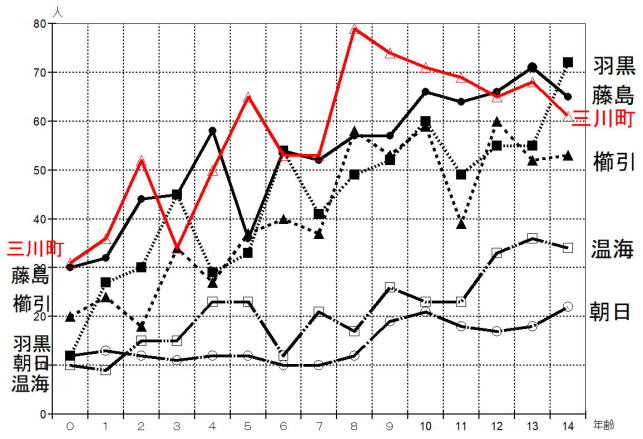 三川町と旧町村地域の子ども数を比較すれば、平成大合併の弊害は明らかです。