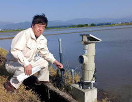 1)渇水時の農業用水確保対策として、特に自然流水等に頼る困難地域について、①確保策についての専門的助言、②平場より手厚い費用支援を提案。(画像は平場でのICT管理設備の視察)