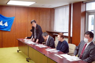 ▽21日、県庄内総合支庁に庄内海岸林の松枯れ対策を要請(写真)。(県議 関 徹)